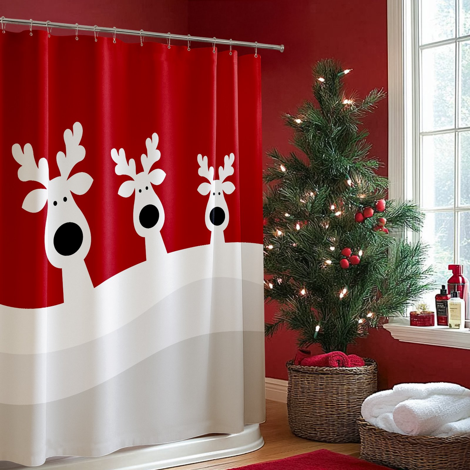 Seasonwood Merry Christmas Elk Shower Curtain, Reindeer Christmas Shower Curtains,Winter Holiday Decor Waterproof Fabric with Hooks,72"x72"