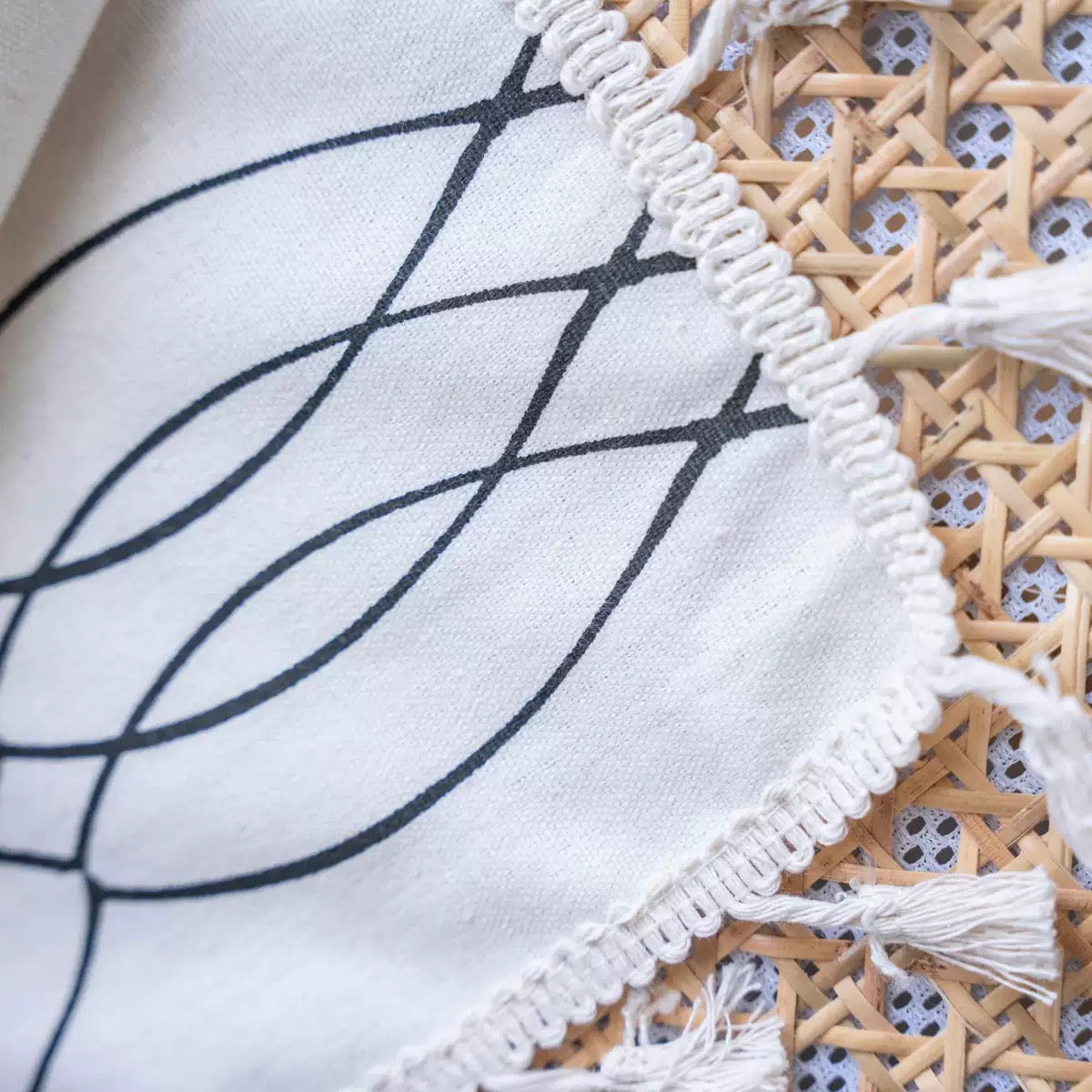Our TURKIO modern geometric style curtain features a beige base fabric with a black striped design for a clean and modern aesthetic. The tassel detailing at the bottom adds a touch of Bohemian charm, blending contemporary style with a warm, inviting feel. Perfect for living rooms, bedrooms, or home offices, this curtain will elevate your space with its modern aesthetic while providing light filtration and privacy protection, ensuring a bright yet cozy atmosphere.